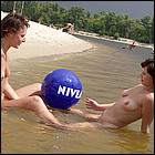clothes, swim naked and play in sand flashing every curve of young body. |